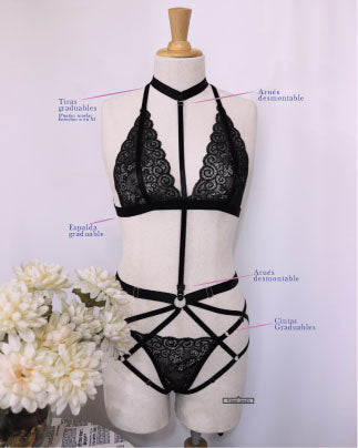 - Set Lingerie; Bra y panty elaborado en encaje, piezas ajustables a través de tensores metálicos